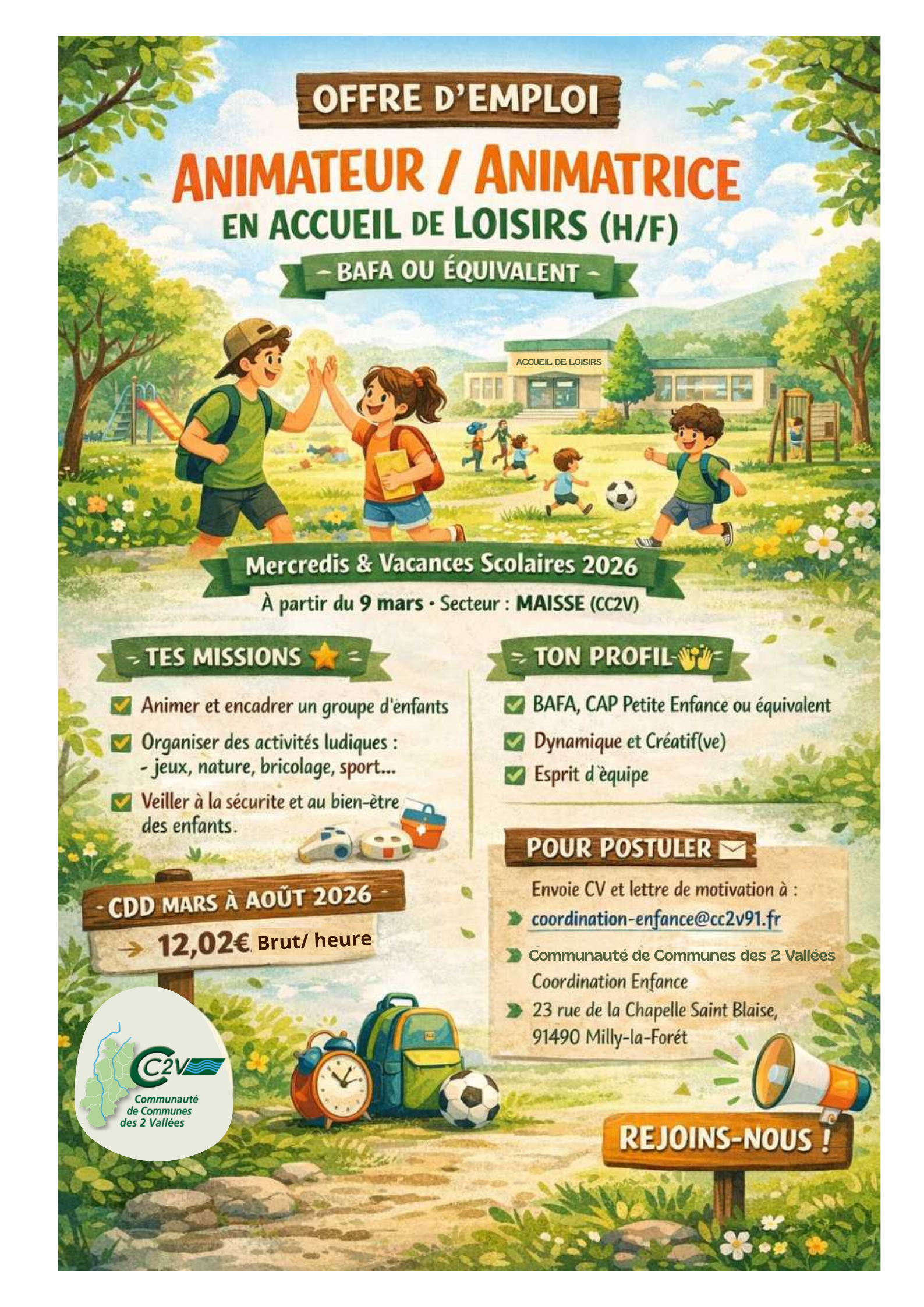 📩 Envoie vite ton CV + lettre de motivation : coordination-enfance@cc2v91.fr